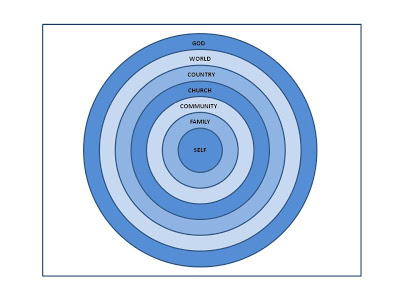 The Heirarchy of Loyalties: God, World, Country, Church, Community, Family, Self is presented in the model as a series of concentric rings, and in the second diagram as a pyramid. I am most interested in the cross-cultural comparisons, American with Filipino. There is no "typical man" in either land, because we all walk as individuals, but perhaps there is an "average man".I'd see the shape of the concentric circles to vary by culture. The self is huge in both, but perhaps inflated just a little more in the Philippine circles.God, Church and Family are larger in the Filipino model.World and Country are larger in the American model.Community is perhaps just a smidge larger in the Philippine community.So the Philippines has generally more robust loyalties, yet the binding quality of harmony seems larger in the American model.How strange. Maybe the loyalties are so loyal that they are inflexible, and that leads to strife.I suppose that gets us to the attributes of "direction, intensity and reciprocity" and within them, the action of vegeance.