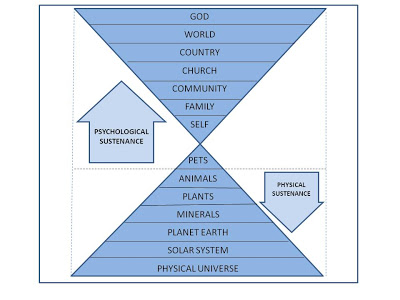 Cha,1. It is Wednesday and not Monday. If it had been Monday, I would not expect a response at all. Joe is spacing out Parts 2 and 3 so there should be enough time to let everything sink in.2. You are correct, loyalties are fluid. I call it Substitutable. The Direction and Intensity of loyalties are volitional. As I say, the Direction may be conscious or it may be circumstantial or accidental. It may be chemistry. Why do we love someone in particular and not another? If I knew that, you may address me as Your Holiness. :-)3. No. 1 is any overarching world view (Weltanschauung). Some non-believers substitute Evolution for God. Others might accept Nihilism.3.1 In the Psychological Hierarchy, World is more notional. Originally, I conceived it at as the Brotherhood of Men. The physical world, the planet Earth, is in the Physical Hierarchy – that is it provides physical nourishment to man.4. OMG! You ate Porky? But he's practically a member of the construct Family! :-)5. 😉 We will allow Joe his transgressions. There is a certain beauty in Chaos. It is the Unmanifest.