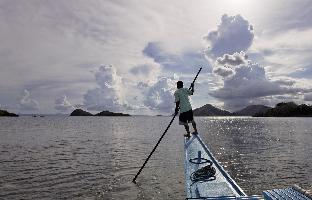 The man poling the boat, a solitary figure heading into the grand expanse of the Philippine seas, where sirens beckon and trepidation lingers in the darkening evening clouds.