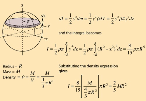 Love physics and believe that the rotational Inertia of a sphere you pictured is quite simple, it only depends of two variables, I = f(R,M)