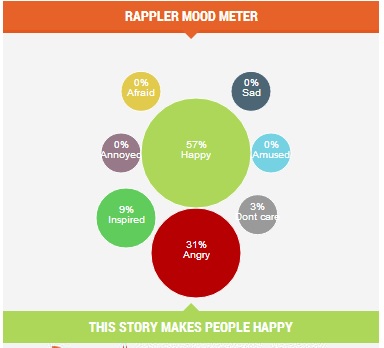 Rappler lets readers indicate their “mood” in reaction to all stories. This is done to gain reader engagement with stories and to make the stories more meaningful to all. Unfortunately, it is an “emotional poll” which has no valid statistical foundation for we have no idea if those indicating a mood are representative of readers or the general population. I never indicate a mood, so the mood of readers of my ilk are completely ignored.