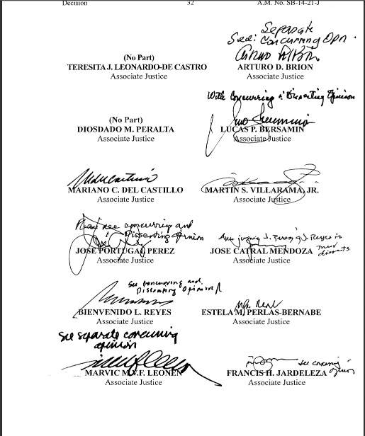 • Jose Catral Mendoza: No separate opinion written. Cited agreement with Justices Perez and Reyes.