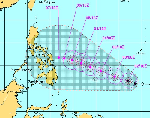 The coming typhoon is one of the most perplexing for forecasters to read, as far as direction and even intensity. In about a day it enters a convergence of weather patterns doing battle, and it becomes an element of that battle. Like a giant scramble and no one knows where it will pop out. Anywhere from north east to south west, which is 180 degrees of separation. The forecasters have been very clear to warn EVERYONE to prepare because they have a low confidence in any projection. They do a best guess, but it is truly a SWAG.