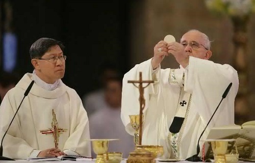 The Pope is controversial in Rome on theological grounds (“Italian writer stirs a hornet’s nest . . .“). Theology means little in the Philippines. Star power means a lot, and this Pope rocks. When God gave out charisma, he assigned a large helping to Pope Francis and another healthy helping to Cardinal Tagle.