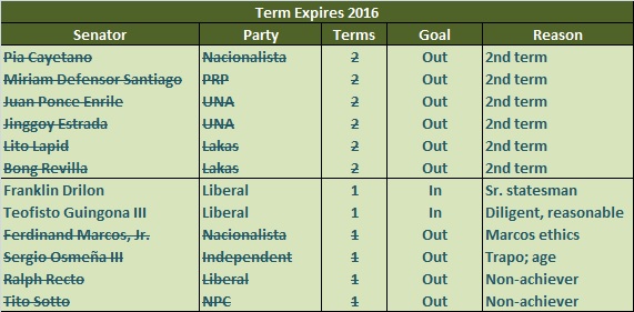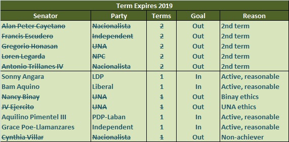 Let’s look at the senators who are up for re-election in 2016 and 2019 and see if there is a strategy that can be articulated that points to achievement-oriented law-writing in support of a fast-rising Philippines.