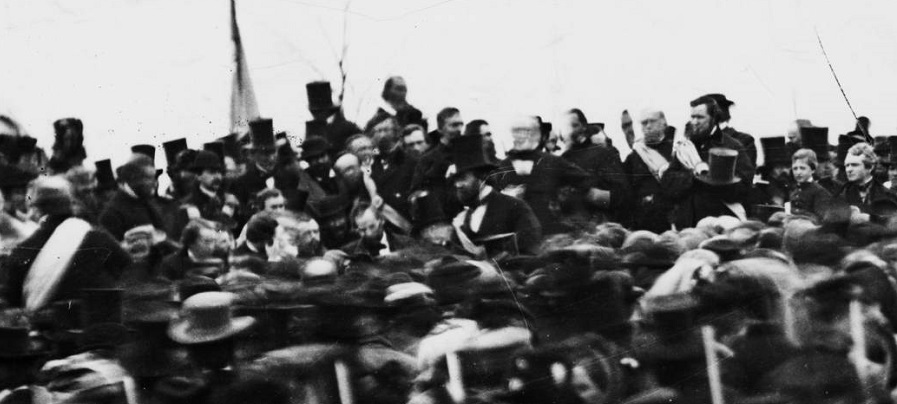 The photograph below of Abraham Lincoln delivering the Gettysburg Address is most striking. He is not the man standing tall in the stovepipe hat as commonly portrayed is sketches of the time. That is his bodyguard. There is no grand stage or microphone, just a crowd of people listening. Mr. Lincoln is bare of head, looking down and reading. He is just another man standing in a mass of humanity, showing no distinction at all . . . other than the character of his words.
