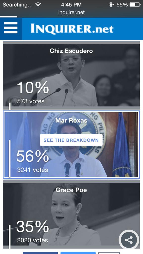 Inquirer poll, Roxas vs Poe vs Escuderon, as of this moment: