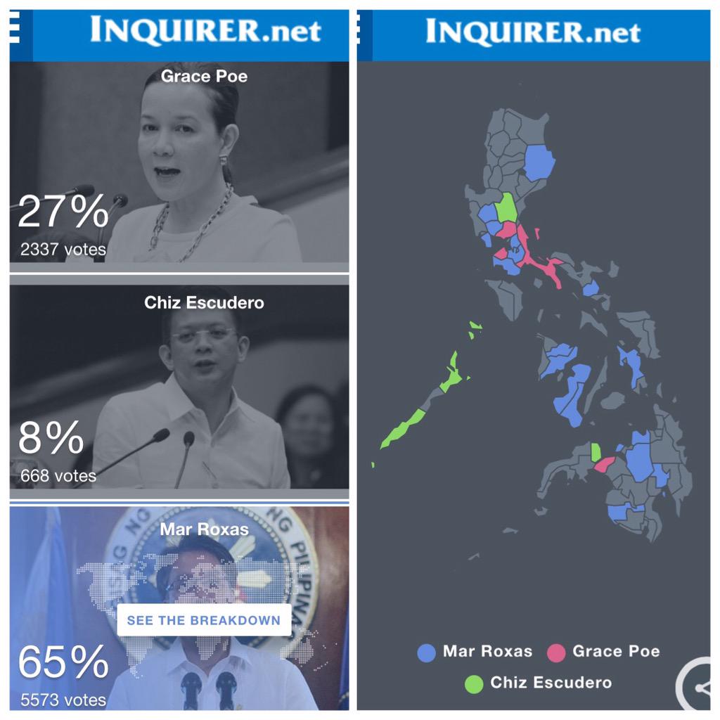 I think it will be a great race. The Inquirer’s little poll the past couple of days suggests that Mar Roxas has a LOT of support, and Escudero very little. Poe, I think, is riding on a bubble. I don’t know that it will stay up. Popcorn time.