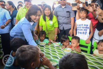 Importante kay VP Leni Robredo na kahalubilo niya ang laylayan ng lipunan. Dito, minamanmanan niya ang isang feeding program para sa mga paslit. (Photo credit: untvweb.com)