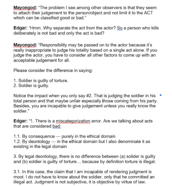 Clearly, in Mayongod’s mind, one should — no, must — separate the act from the actor. The act is not the actor, and the actor is not the act. Here is the discussion: [11][12]
