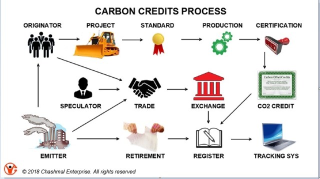 The way to address global warming is by reducing GHG emissions and increasing energy efficiency. Carbon credits is a mechanism by which GHG emission is controlled. This is bascially how it works :