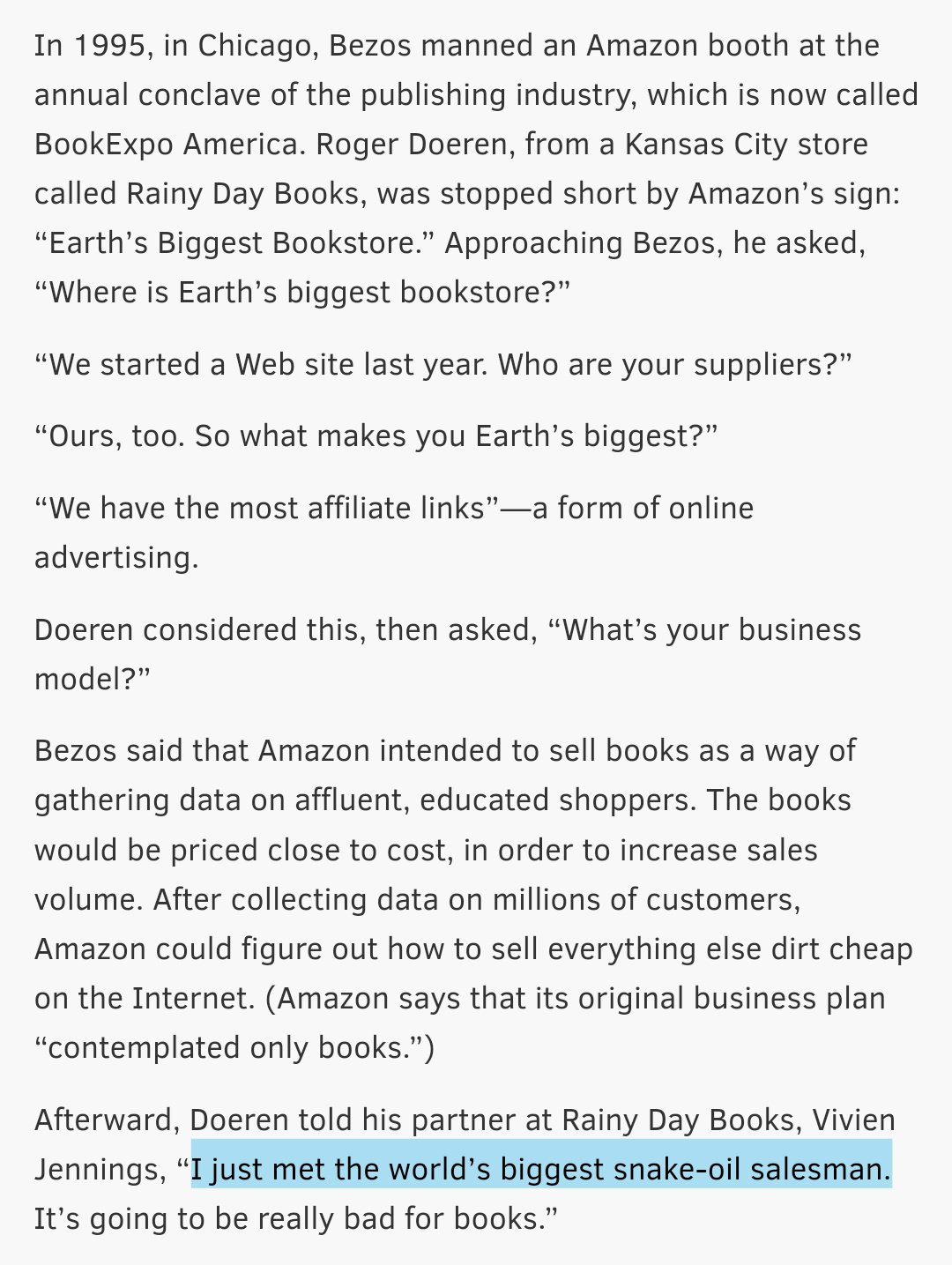 The earlier part in criticism of Amazon I disagree because it’s kicking the wrong horse.