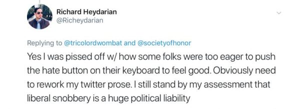 90 Responses to “Heydarian on “petty, elitist, self-absorbed” liberals”