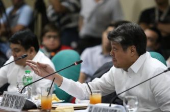 Senator Kiko Pangilinan asks questions at a Senate hearing.