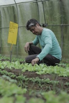Sen. Pangilinan taking out the weeds off a lettuce plot in Sweet Spring Country Farm, his organic farm in Alfonso, Cavite