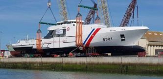 The BRP Gabriela Silang is lifted to water. [Photo source: Rappler]