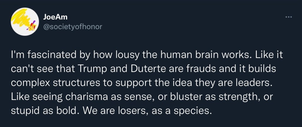 I commented on Twitter that James Fallows, who wrote an earthshaking piece for The Atlantic that called the Philippines a “damaged culture”, was back with a blog. I learned that a lot of my followers have no idea who James Fallows is. They have no idea what Marcos was about, in fact. Or Edsa. Or Gloria Arroyo.