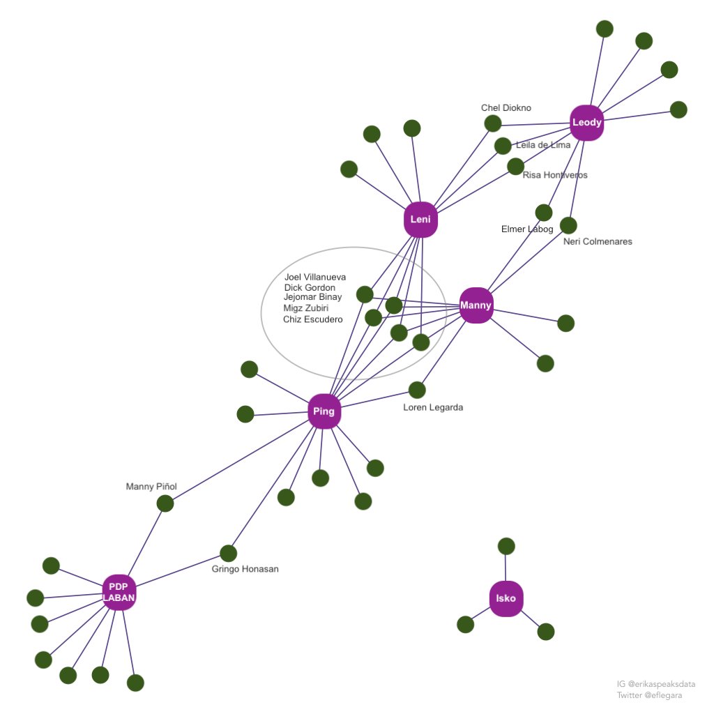 The chart shows the connectivity of the different Presidential Candidates in the May 2022 election — a connection via the “guest” senatorial candidates. More in the cases of Leni, Lacson, and Pacquiao (5 senatorial candidates); less so in the cases of Dela Rosa; and none in the case of Isko which moreover has only 3 relatively light senatorial candidates — a case of a bridge-too-far.