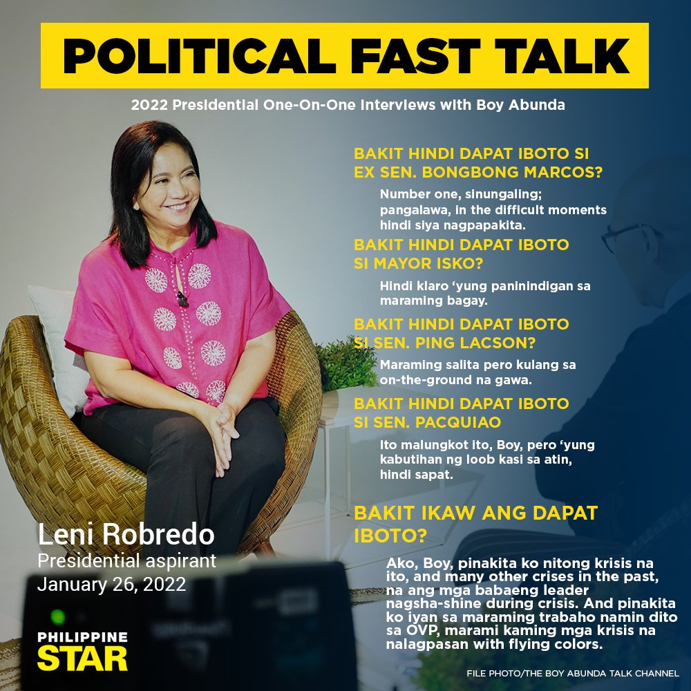 VP Leni has an interview with Boy Abunda later. Could be interesting.
