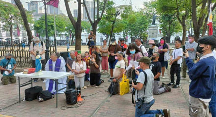 by Wilfredo G. Villanueva General Ely in brown shirt stands behind the image of the Blessed Virgin Mary on the left. Father Robert Reyes, the “running priest,” celebrates Holy Mass at Plaza Roma in the center of Intramuros, facing Comelec headquarters. Responding to observations that we are few, Gen. Ely is unperturbed. “It’s not the … Continue reading →